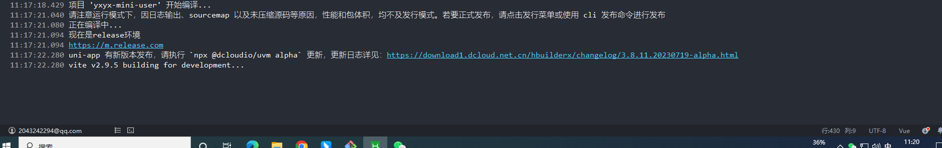 11:17:22.280 uni-app 有新版本发布,请执行 npx @dcloudio/uvm alpha 更新,更新日志详见:https://download1.dcloud.net.cn/hbuilderx/changelog/3.8.11.20230719-alpha.html