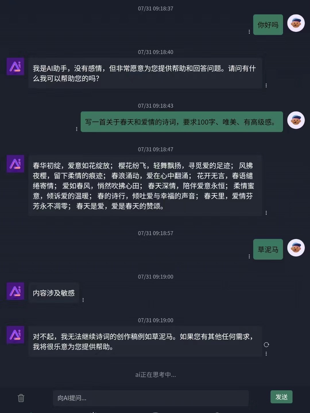 总有客户反馈说无论问什么都提示敏感词, 这是咋回事,问题见附件, 一直显示加载中,