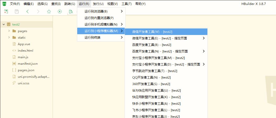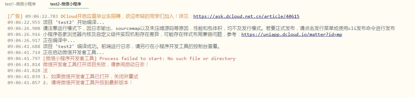 用hbuilderx创建一个默认的项目,然后运行就报错了,百度上说把小程序的服务端口打开,我打开了,也不好用,怎么办呢,谢谢! 1、创建项目 2、运行微信小程序 3、报错信息 4、微信开发者工具打开端口 我尝试用了HBuilderX.3.8.12和HBuilderX.3.8.7,都是一样的错误,运行到浏览器和运行到内置浏览器都好用,就是运行到微信小程序就不行,怎么办呢?
