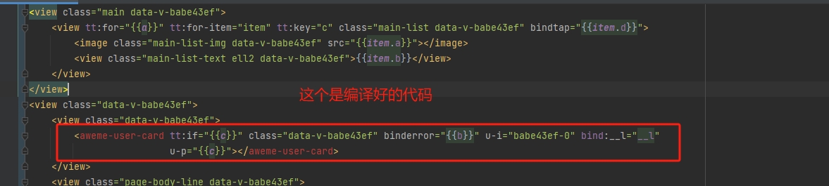 uniapp写的抖音小程序代码,打包后有一行代码(aweme-id="123456")却没了。