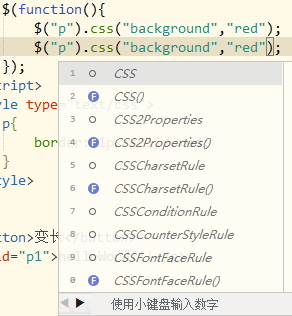 我只是想要个.css()的提示,可提示的前面都是什么呀,我都找不到css()这个代码