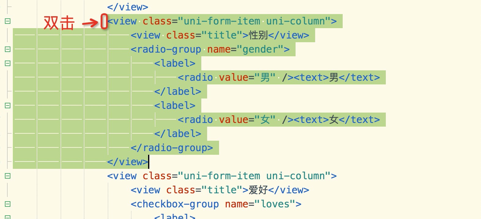 我一般都在标签前面双击 可以直接选中整个标签 然后在定位到标签结尾