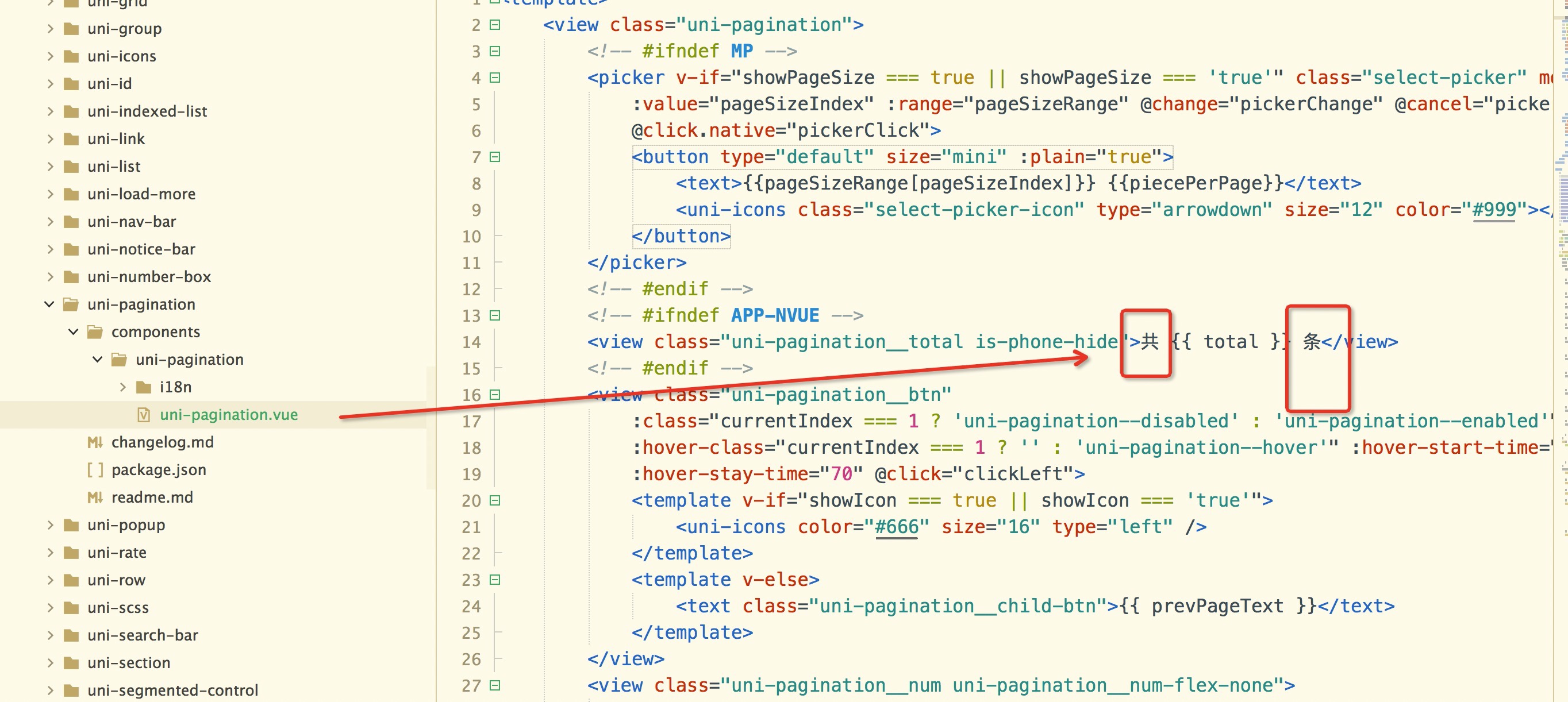 看源码 这个 共 条 是写死的 没有做多语言处理