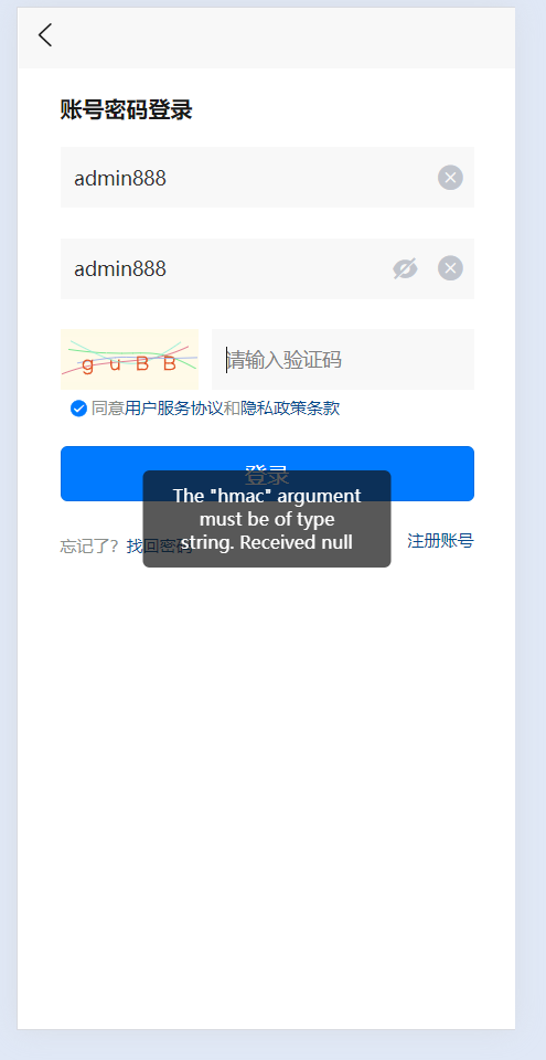 后台创建了账户,并且uni-id进行了设置,但是前端登录不上去,并且报错