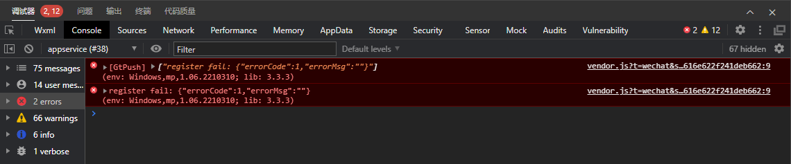[GtPush] ["register fail: {"errorCode":1,"errorMsg":""}"](env: Windows,mp,1.06.2210310; lib: 3.3.3)