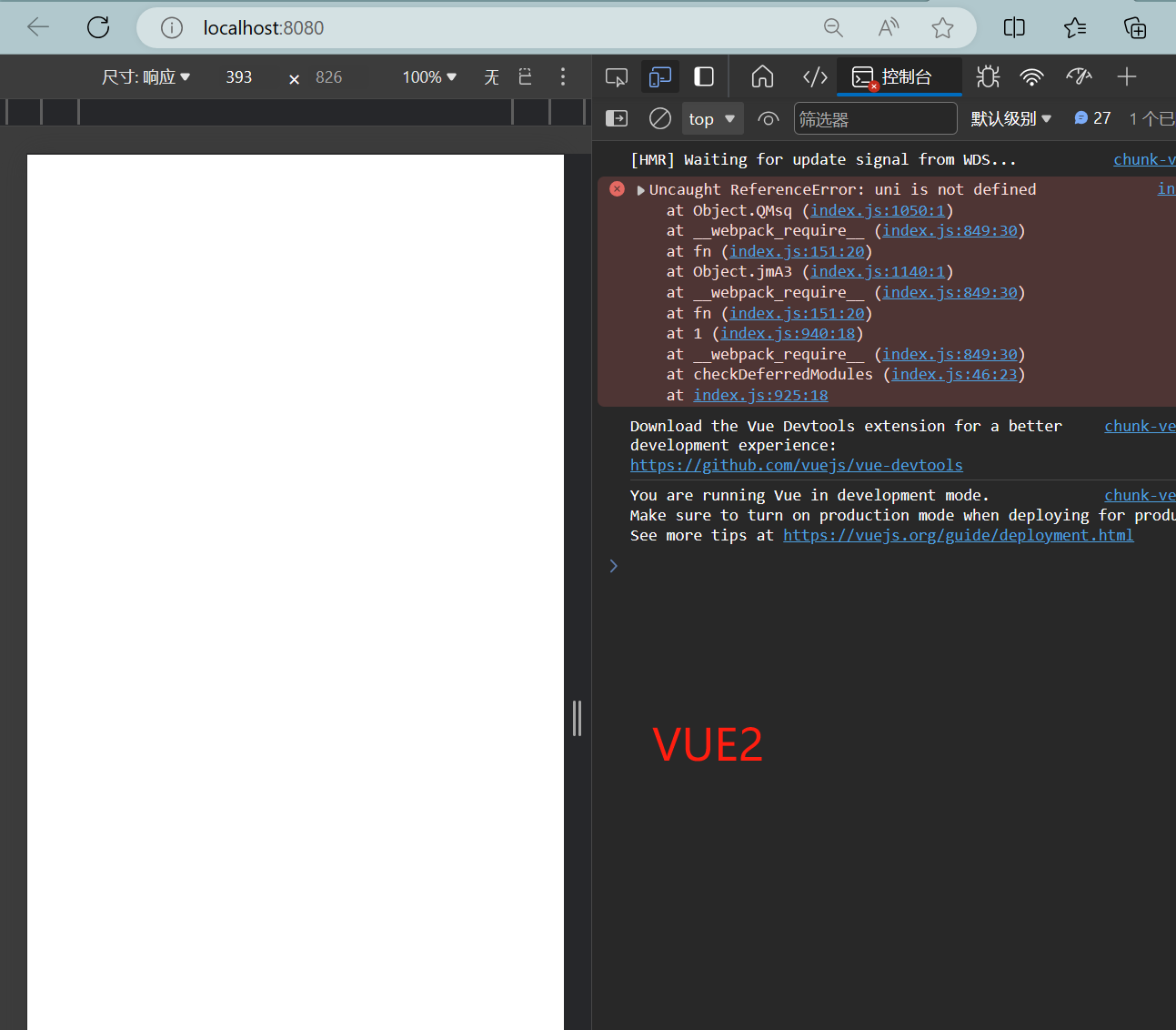 uniapp的vue3能正常运行helloword,运行vue2会报错Uncaught ReferenceError: uni is not defined