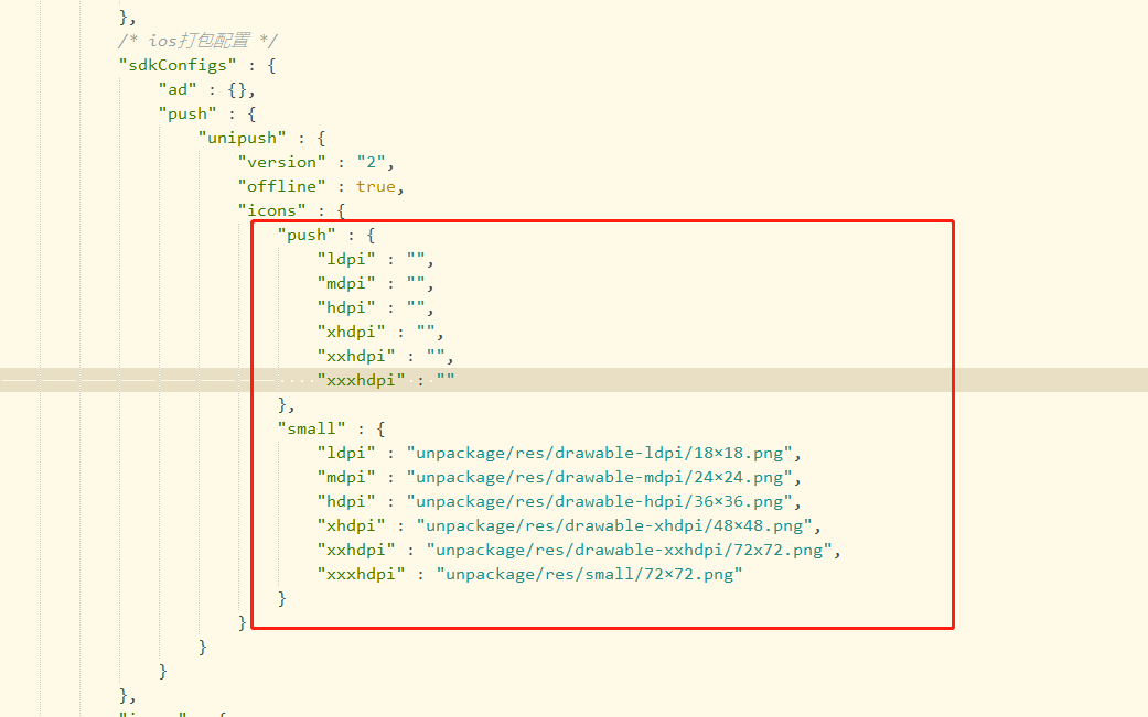 sdkConfigs.push. icons.push设置空字符串,small不变,打包后推送通知栏小图标大图标全都不对了,小图标变成各推的小鲸鱼了