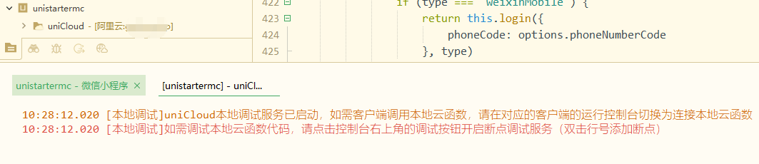 初始化完成了,uniCloud旁边也标记了 空面名称