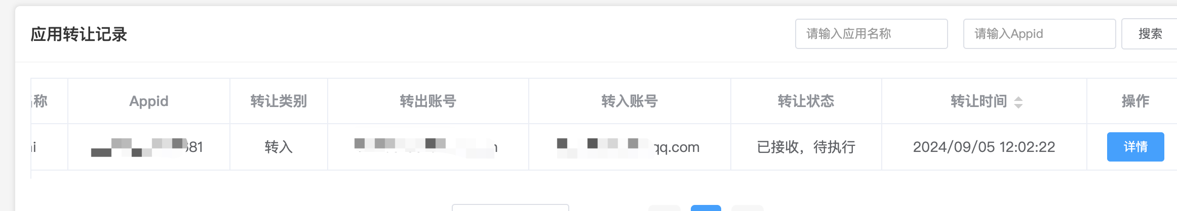 我卡在 已接收,待执行,还是没有转过来,现在老账号上能看到但是没权限操作,新账号上只显示转入记录,没有应用。