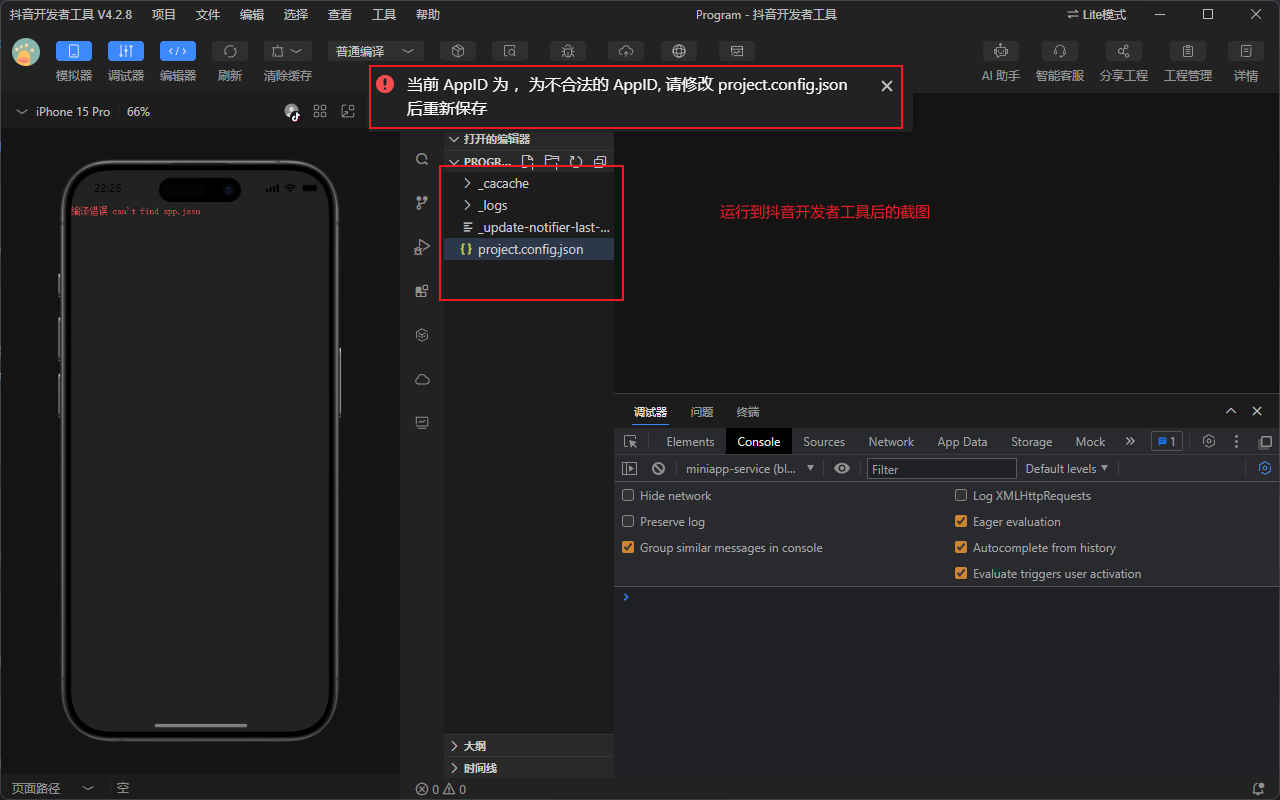 我用的若依的移动版,打包成抖音小程序,提示AppId非法。