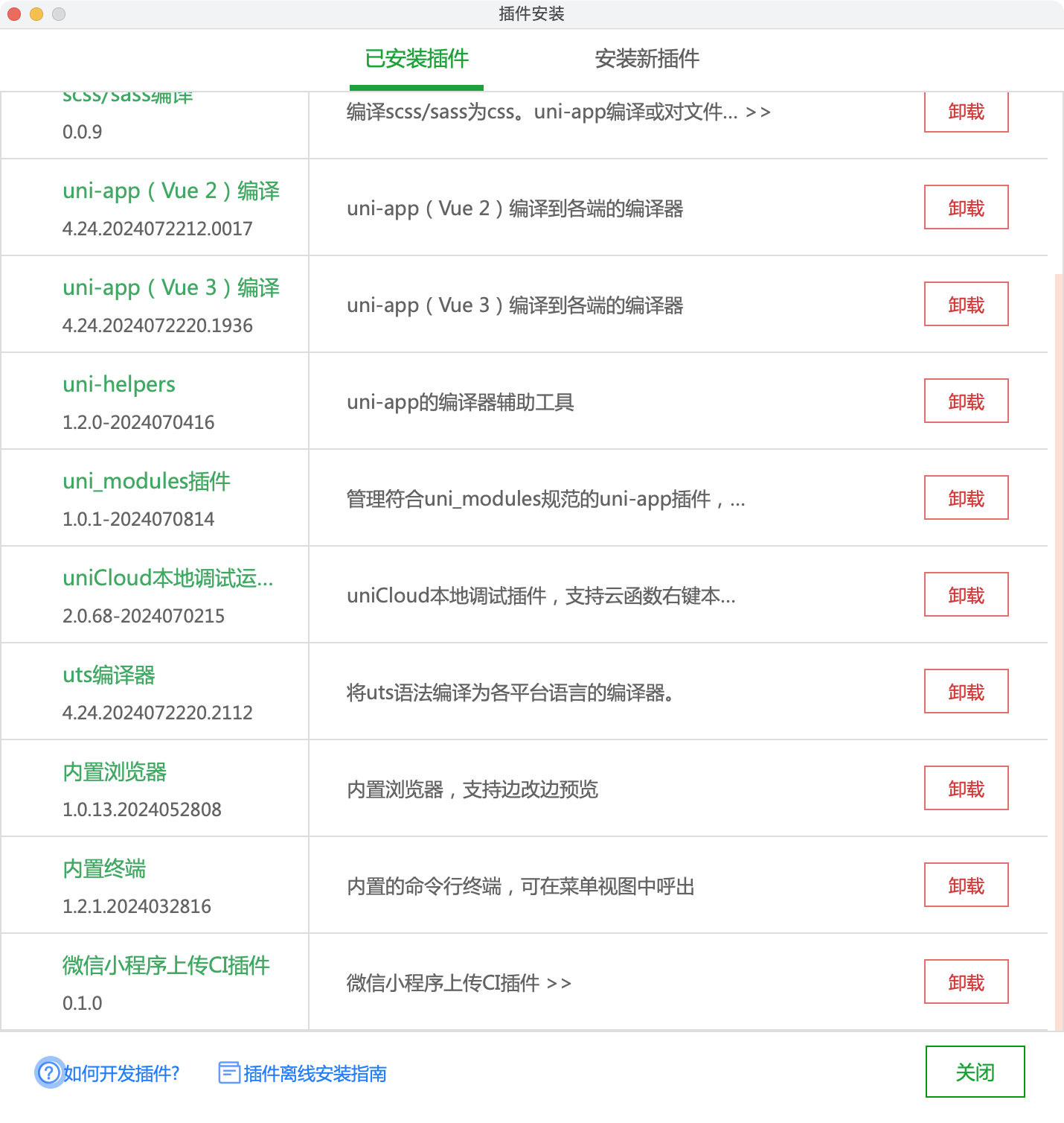 的确是HBuilderX进程的,但是貌似也没有异常的插件,下面是所有的插件。