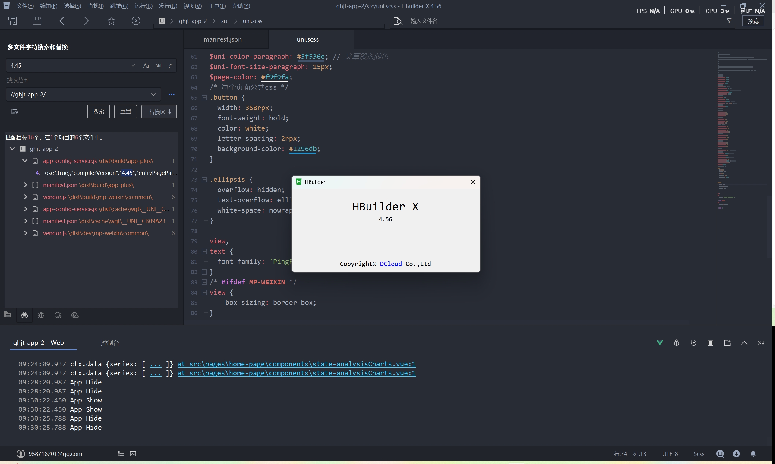 控制台输出:wgt文件由HBuilderX 4.56 版本生成,运行的基座sdk也需配套相同版本