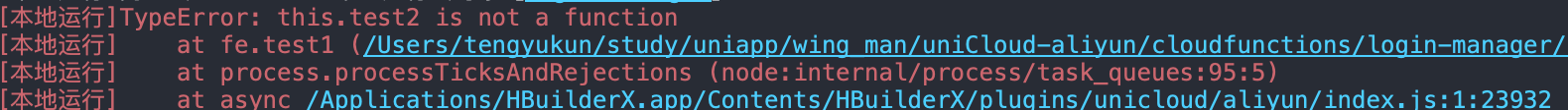写了最简单的云对象,test1方法想要调用test2方法,但是报错TypeError: this.test2 is not a function