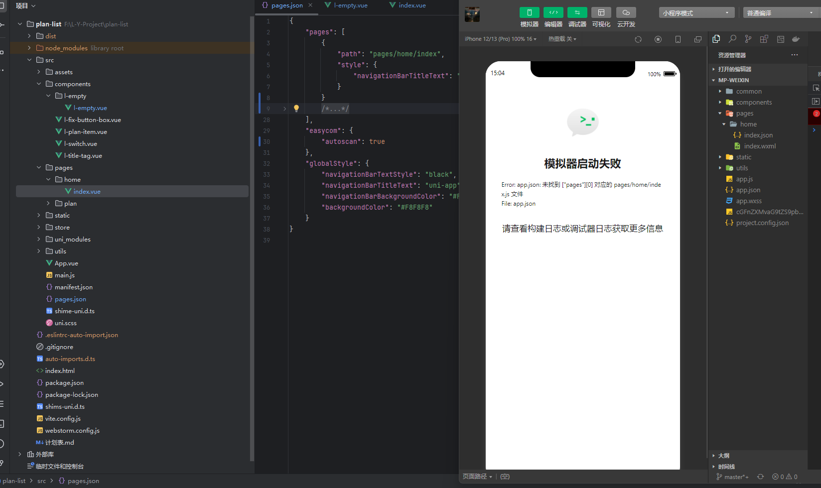 出现该问题的原因是,easycom 将 页面文件和 组件文件 编译到了一起。导致页面文件丢失了 入口(entry chunck) 。