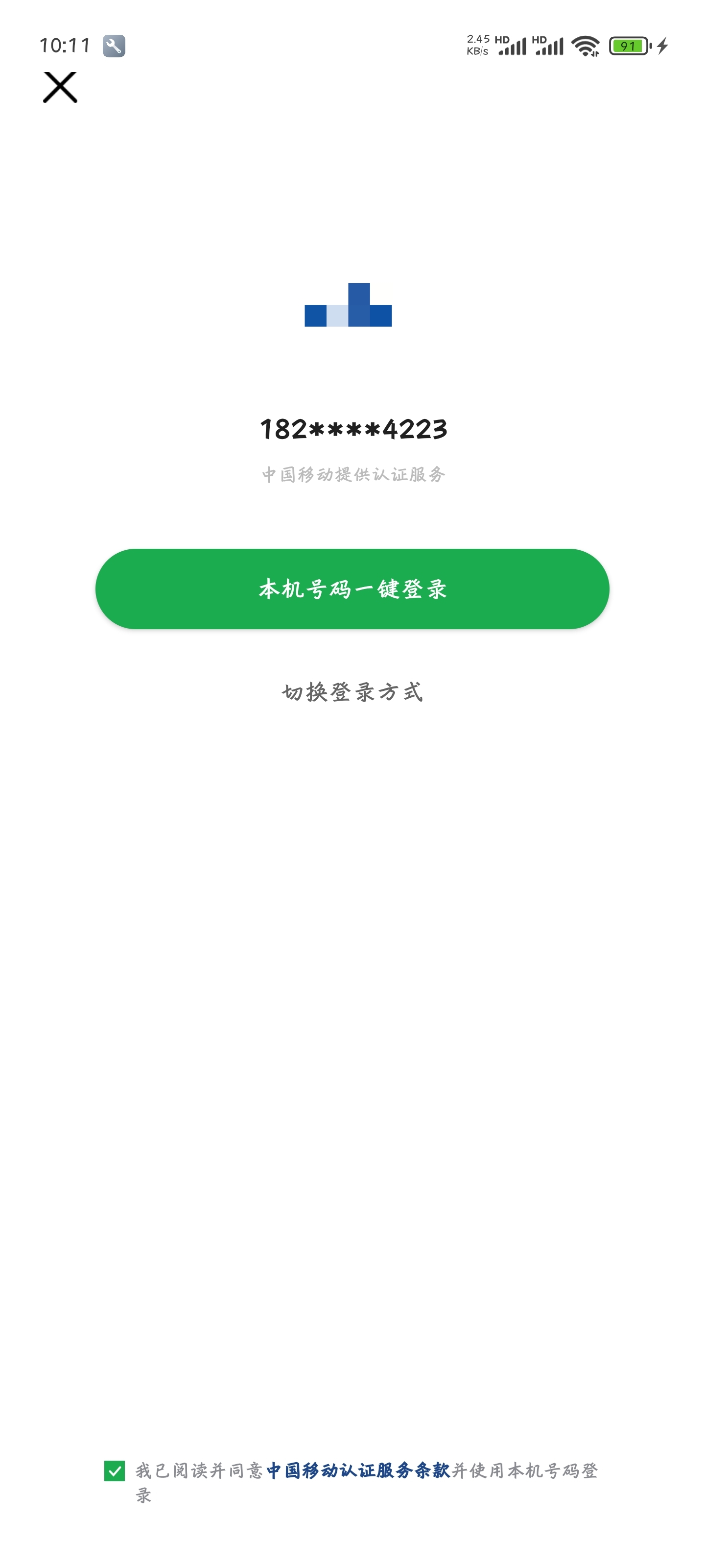 手机号码一键登录的授权界面,在全屏模式下,左上角的关闭按钮显示不全