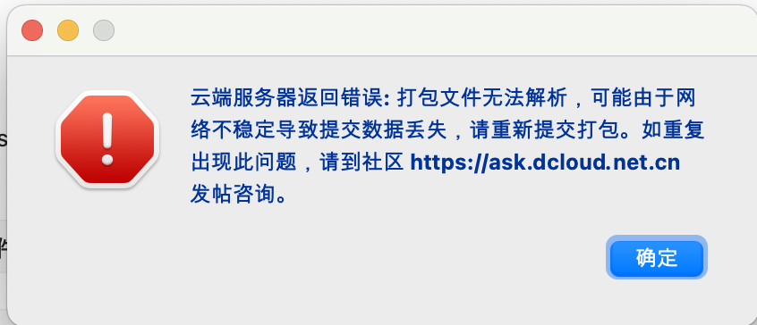 弹窗提示:打包文件无法解析