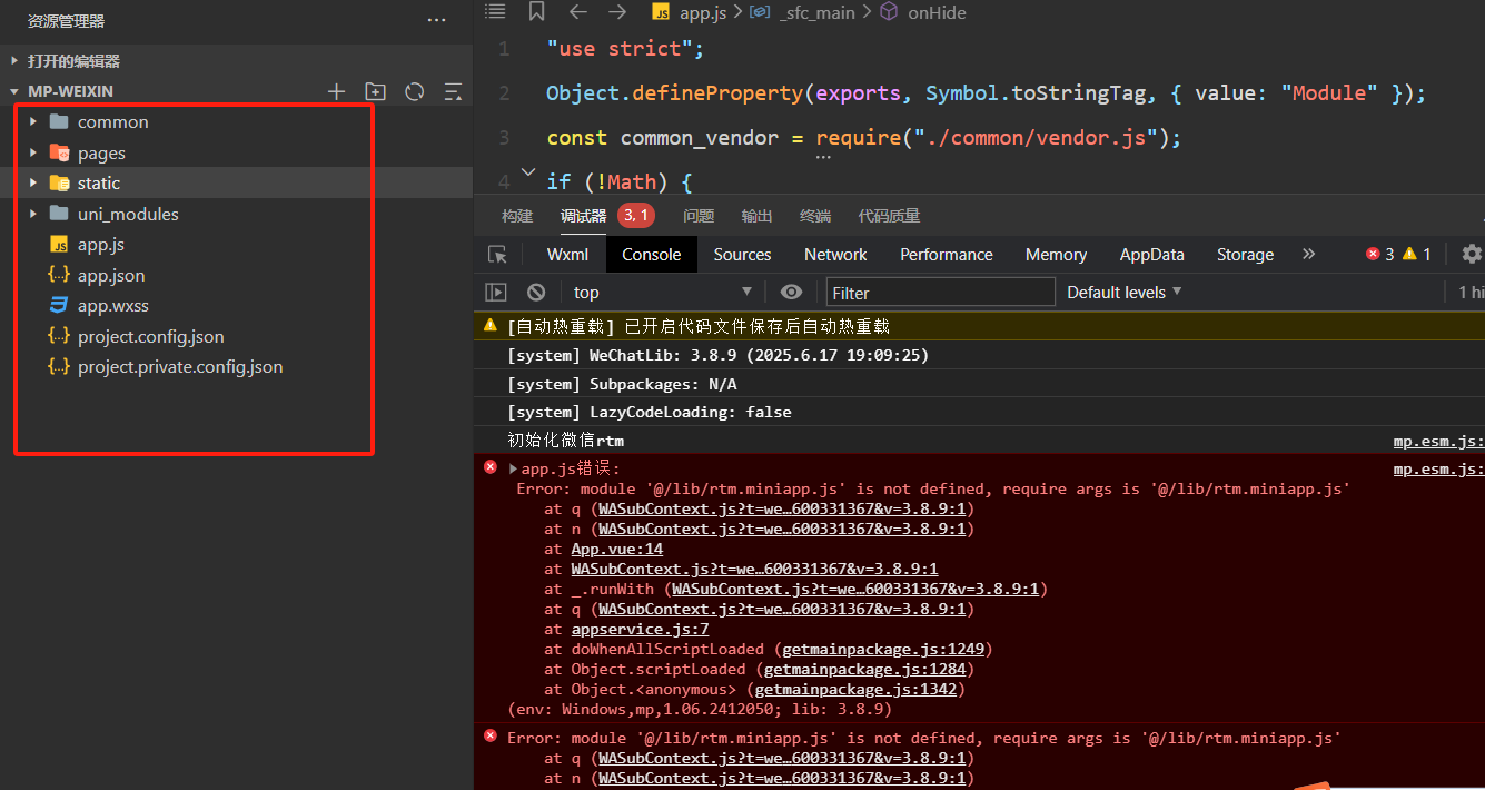 Error: can not find module : , require args is ../lib/rtm.miniapp.js