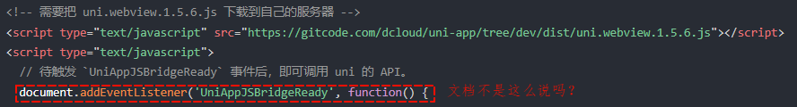 使用这个webview打开网络html链接,html页面内引入了 uni.wenview.js 如下图