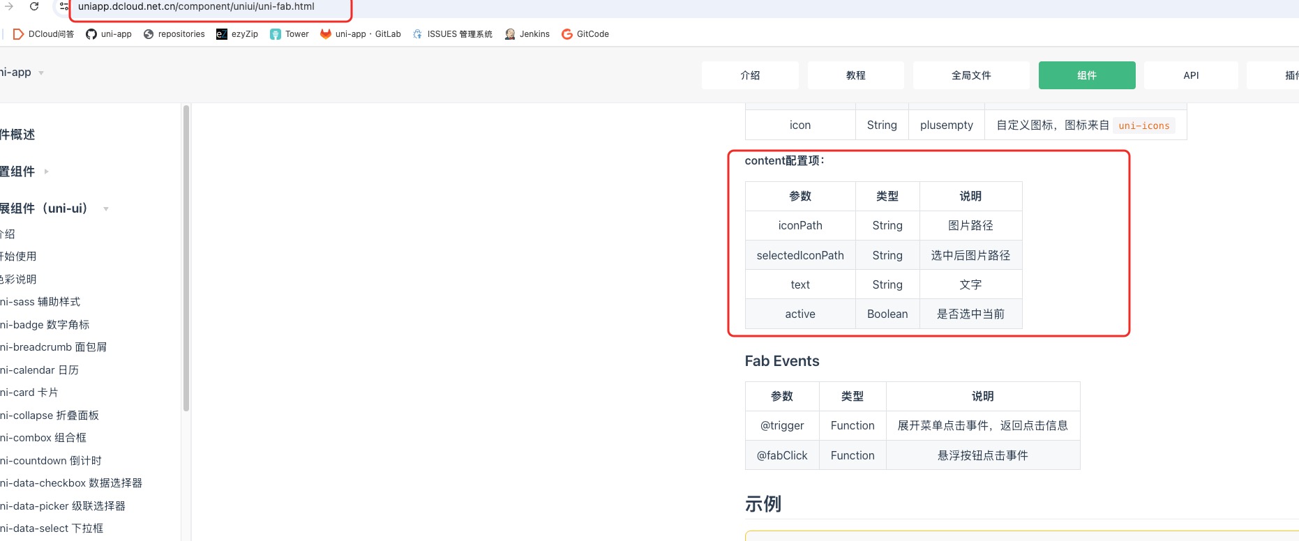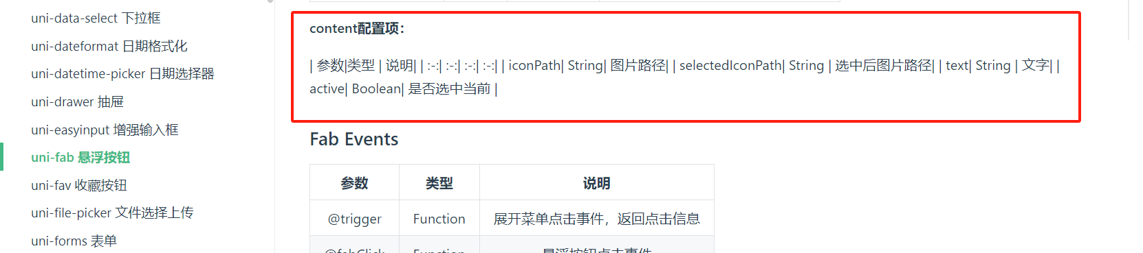 uniapp的uni-fab组件文档排版错乱