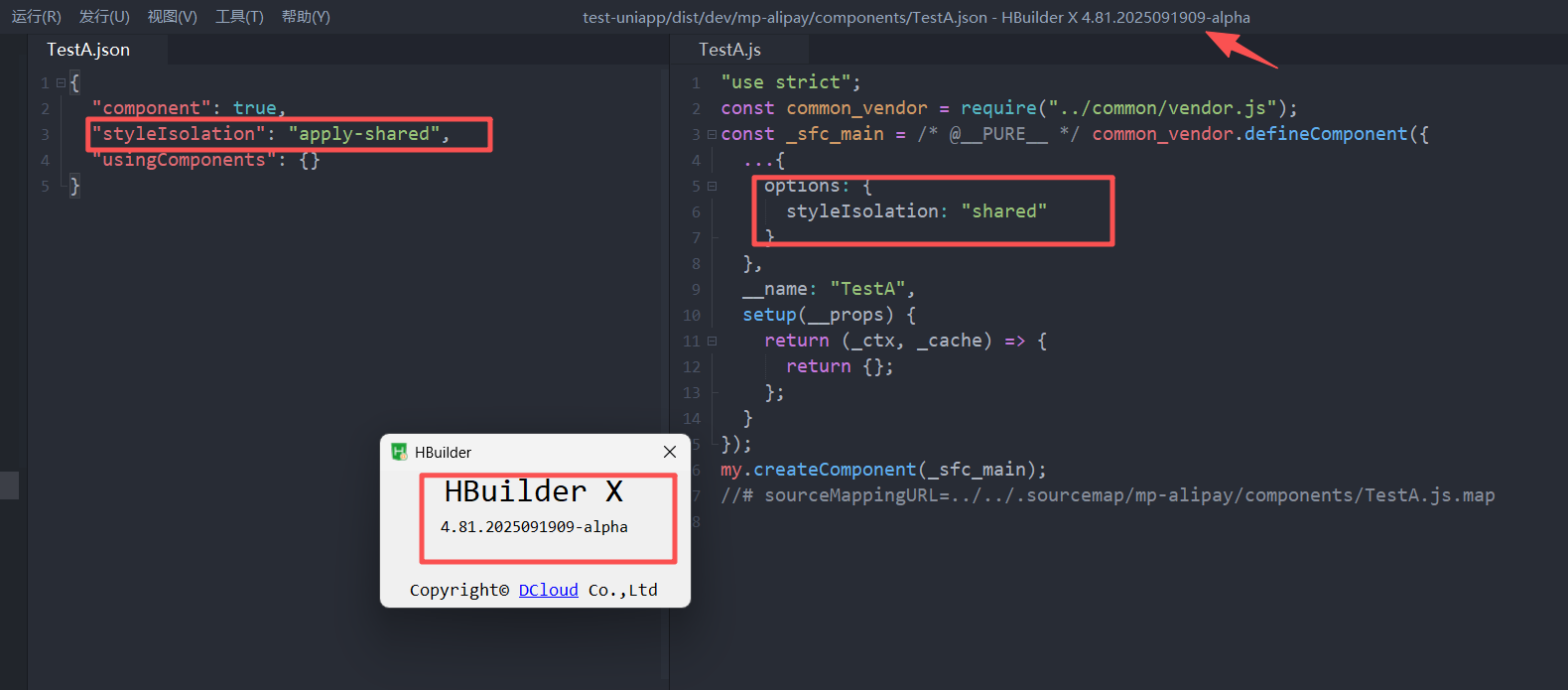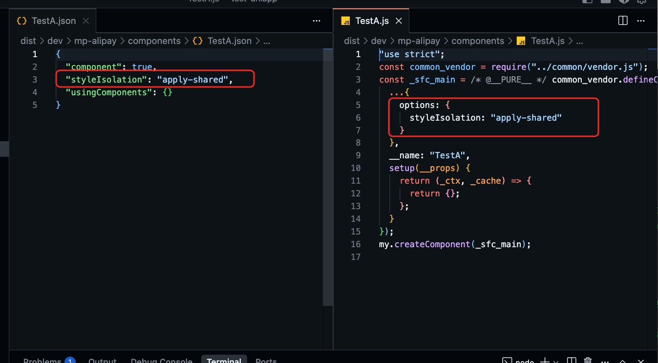 这个问题一直存在的,微信小程序也一样,styleIsolation 要写在 defineComponent里面才会生效。