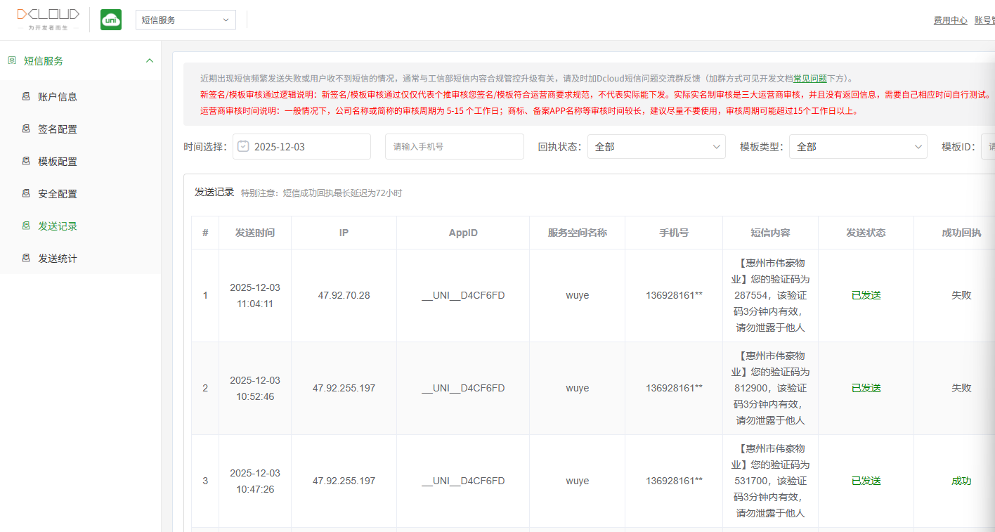 打包提示验证手机号,发送验证码成功,但是一直无法接收到短信验证码
