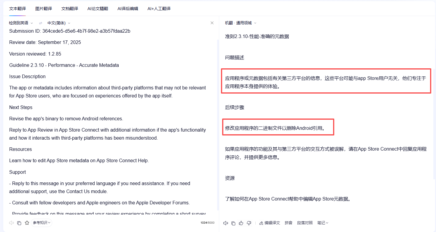 【报Bug】IOS云打包上架被驳回提示元数据包含第三方平台信息