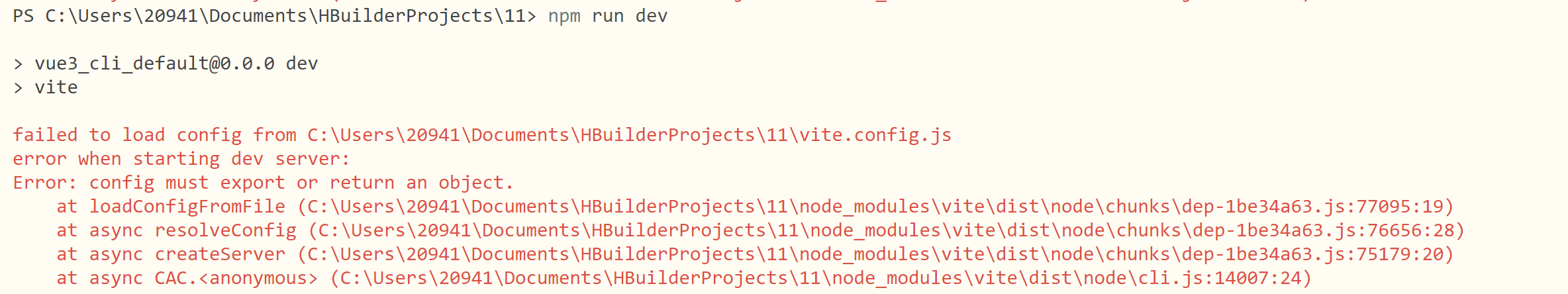 一开始是可以运行的,但是后来不知道动了什么文件,导致现在一直运行出错,vite,node npm版本什么的都排查过了,还是有问题,电脑已经重装了,依旧没有解决问题。