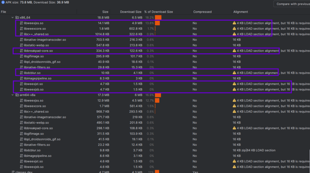Android uni小程序 SDK SO 不支持16K 问题,google play store 要求需要在11月1号之前更新16kb 的支持,SDK 目前有部分SO 库不支持.