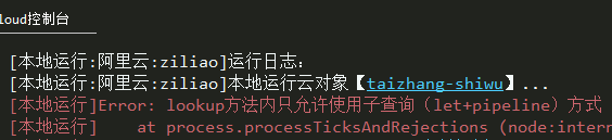21:19:51.917 [本地运行]Error: lookup方法内只允许使用子查询(let+pipeline)方式