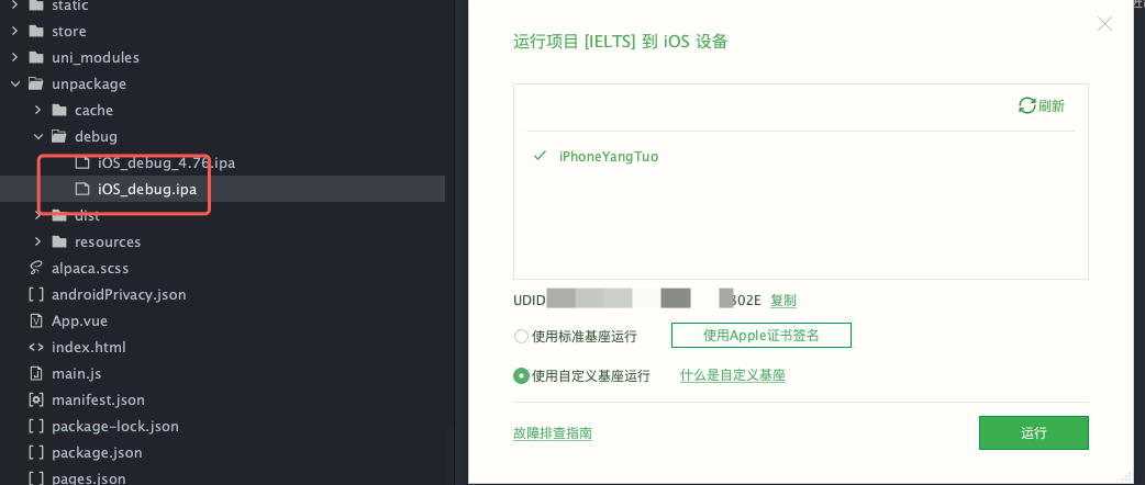 iOS离线打包生成自定义基座,如果修改了项目的TARGRTS,原本是“HBuilder”改成了自己项目的名字,那生成的IPA文件改名成iOS_debug.ipa 放入debug目录在XHBuilder 中也无法识别到自定义基座。 有什么办法处理么?因为公司项目比较多,我想使用同一个基座,只能改名