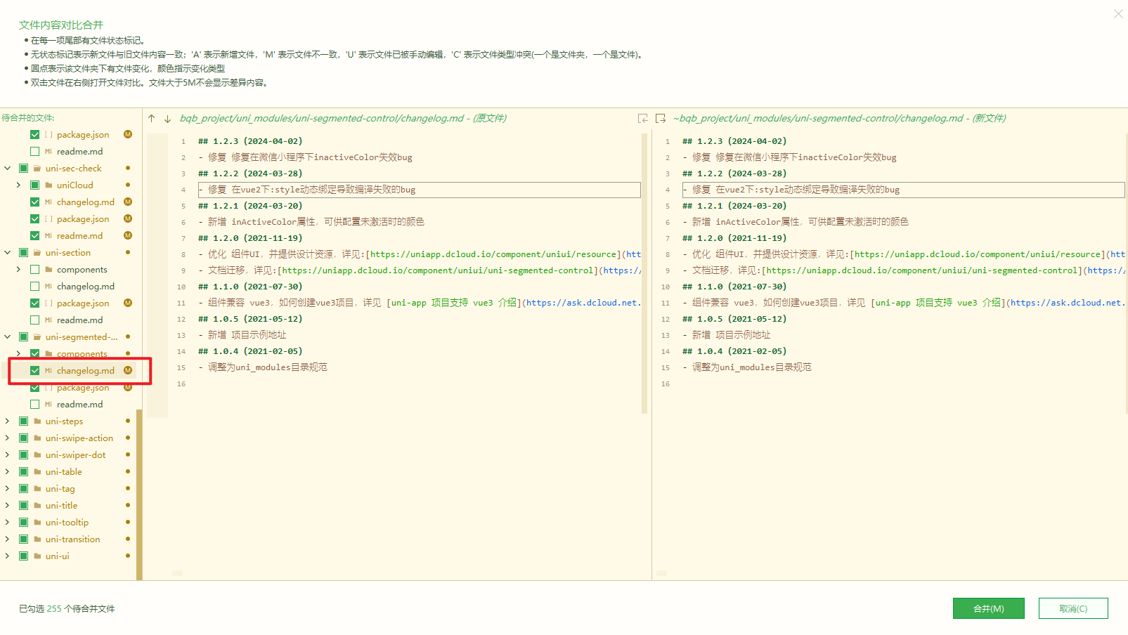 包括很多标记有【更改】,但实际没有不同或只有一个空行差别的文件