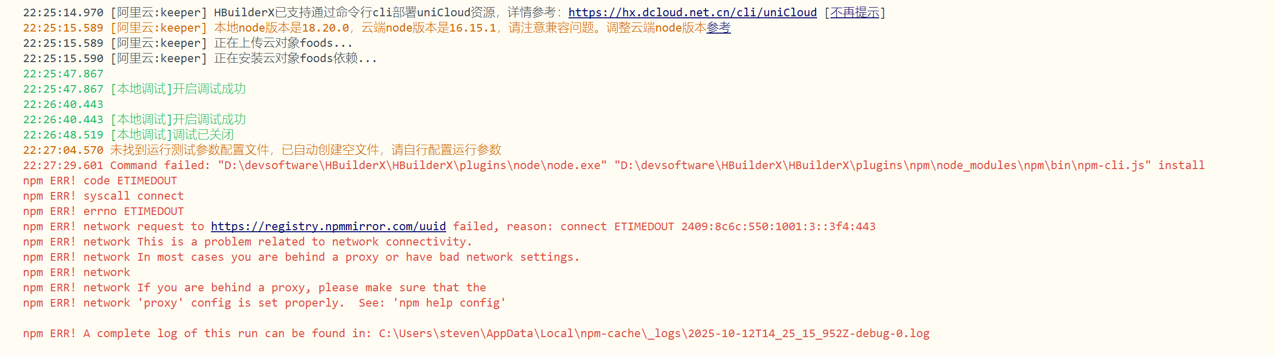 22:27:29.601 Command failed: "D:\devsoftware\HBuilderX\HBuilderX\plugins\node\node.exe" "D:\devsoftware\HBuilderX\HBuilderX\plugins\npm\node_modules\npm\bin\npm-cli.js" install
