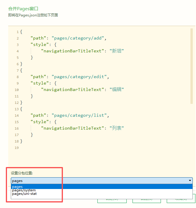 schema2code合并pages设置分包位置默认只有3个可选,能否自定义目录呢? 有点强迫症,想在pages目录下多新增几个模块目录如 pages/app/cate/list.vue 、 pages/app/type/list.vue这种,要如何实现呢?