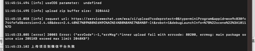 使用CLI打包小程序,会包超出大小限制(主包2051K)。