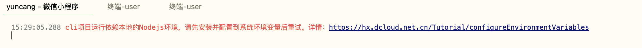 cli项目运行依赖本地的Nodejs环境,请先安装并配置到系统环境变量后重试