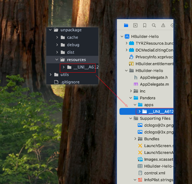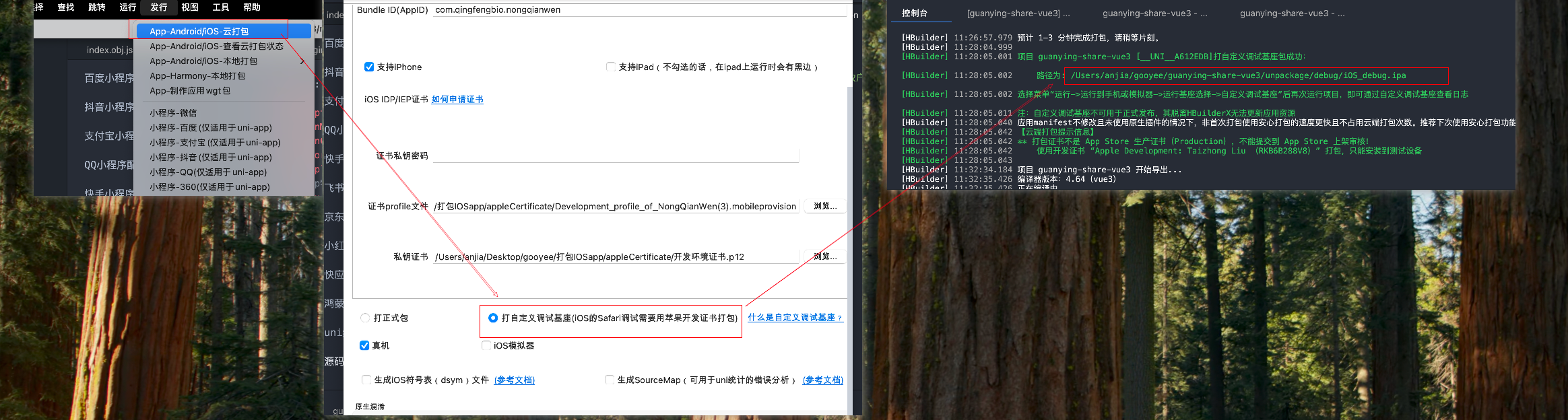 前提我是uniapp 发行ios app包 现在集成了uni-push 我想通过本地打包后通过xcode上传到应用商店 但是uni的文档上说必须使用云打包 我用云打包自定义基座生成的包是guanying-share-vue3/unpackage/debug/iOS_debug.ipa 但是xcode要的包是guanying-share-vue3/unpackage/resources/UNIA612EDB这种类型的 现在如果使用本地打包 把打好的包放入xcode中 xcode上传安装到手机上无法接收到个推的消息通知 但是我在hbuilder上直接运行 到app上选择自定义基座就可以收到 现在的问题是 我不知道如何将hbuilder打好的包如何和xcode联系起来