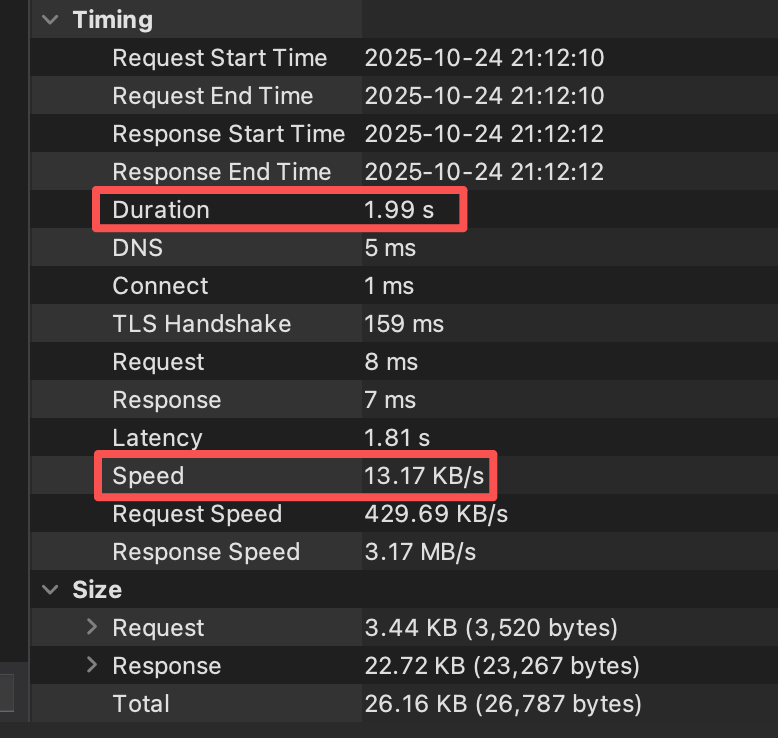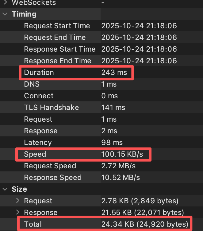 如题,请教下,我使用的是阿里云按量付费服务空间,然后我发现云函数处理速度在 50ms 左右 但是我通过 Charles 抓包,发现接口总耗时将近 2 秒,接口总传输大小也才 20k 左右 对比其他 app,例如高德地图,同样 20k 左右的接口,总耗时只有 240+ms 基本所有云函数都存在这个问题,所以想咨询下是否是带宽问题?如果是的话如何能提升带宽呢?多花点钱也可以,现在体感上太慢了