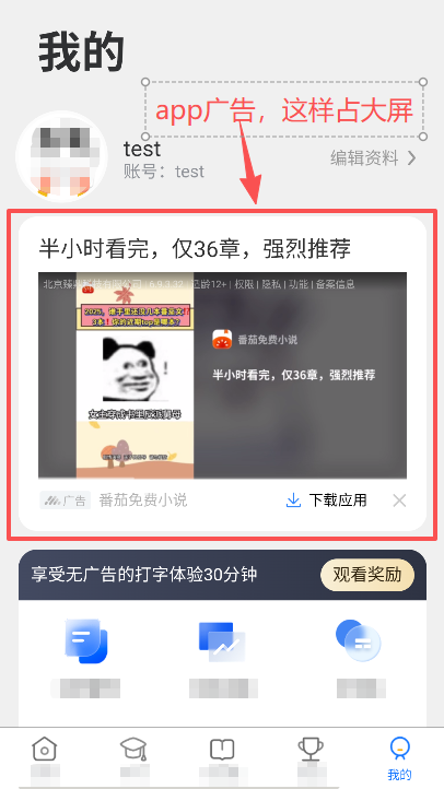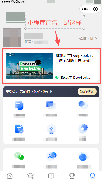 大家看一下,小程序 的体验,然后在对比app的广告体验。如图:
