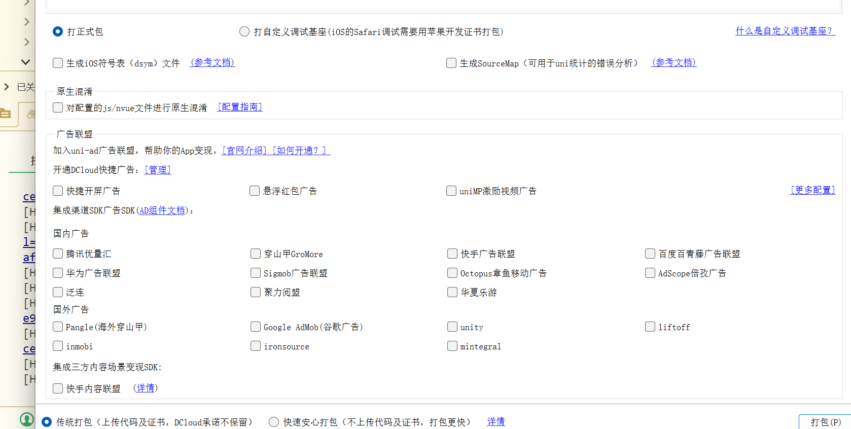 HBuilderX版本4.76,确认勾选的是传统打包模式