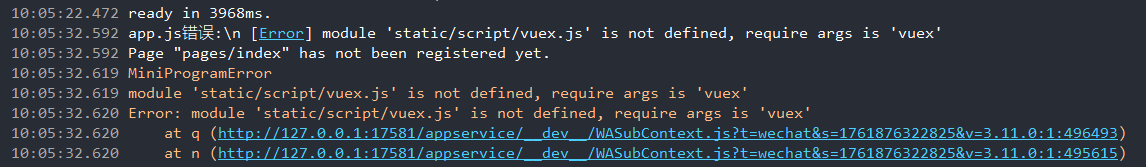 初次编译并启动开发工具后,vuex报错,随便修改一行代码触发热更新后就好了