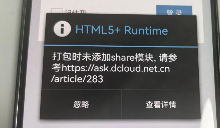 在manifest.json里把share相关的行删了,还是报未添加share模块的错,是bug吗?