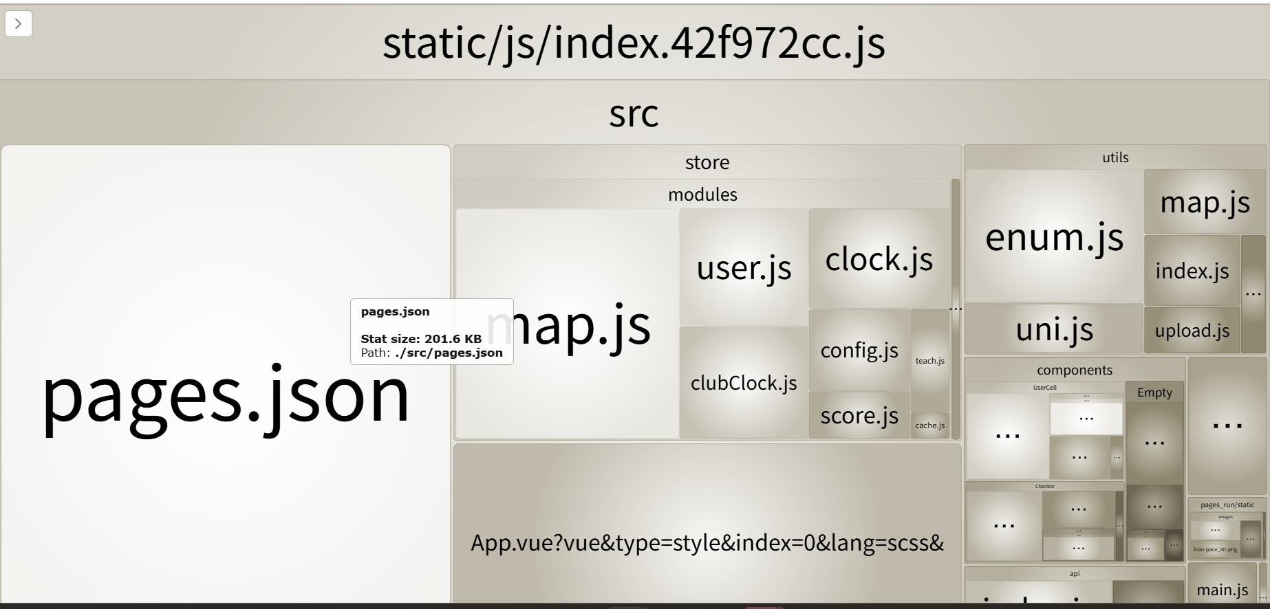 原本是小程序的项目后来需要打包成网页h5,发现pages.json作为网页打包后体积比较大两百多k相对来说,index.js因此900多k