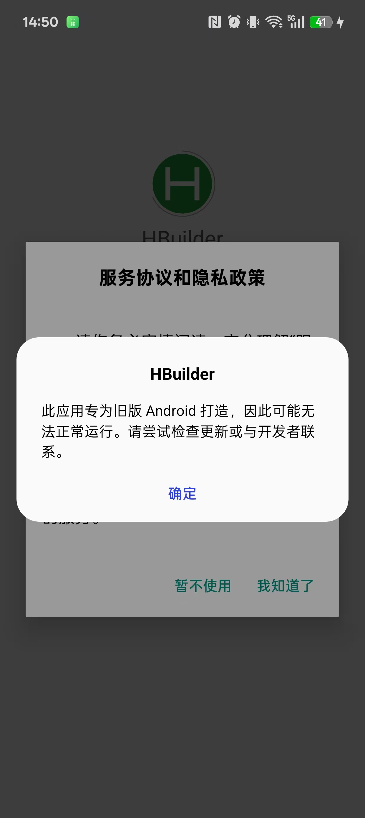 真机测试一直提醒安装软件,安装后提醒此应用专为旧版 Android 打造,因此可能无法正常运行。请尝试检查更新或与开发者联系。