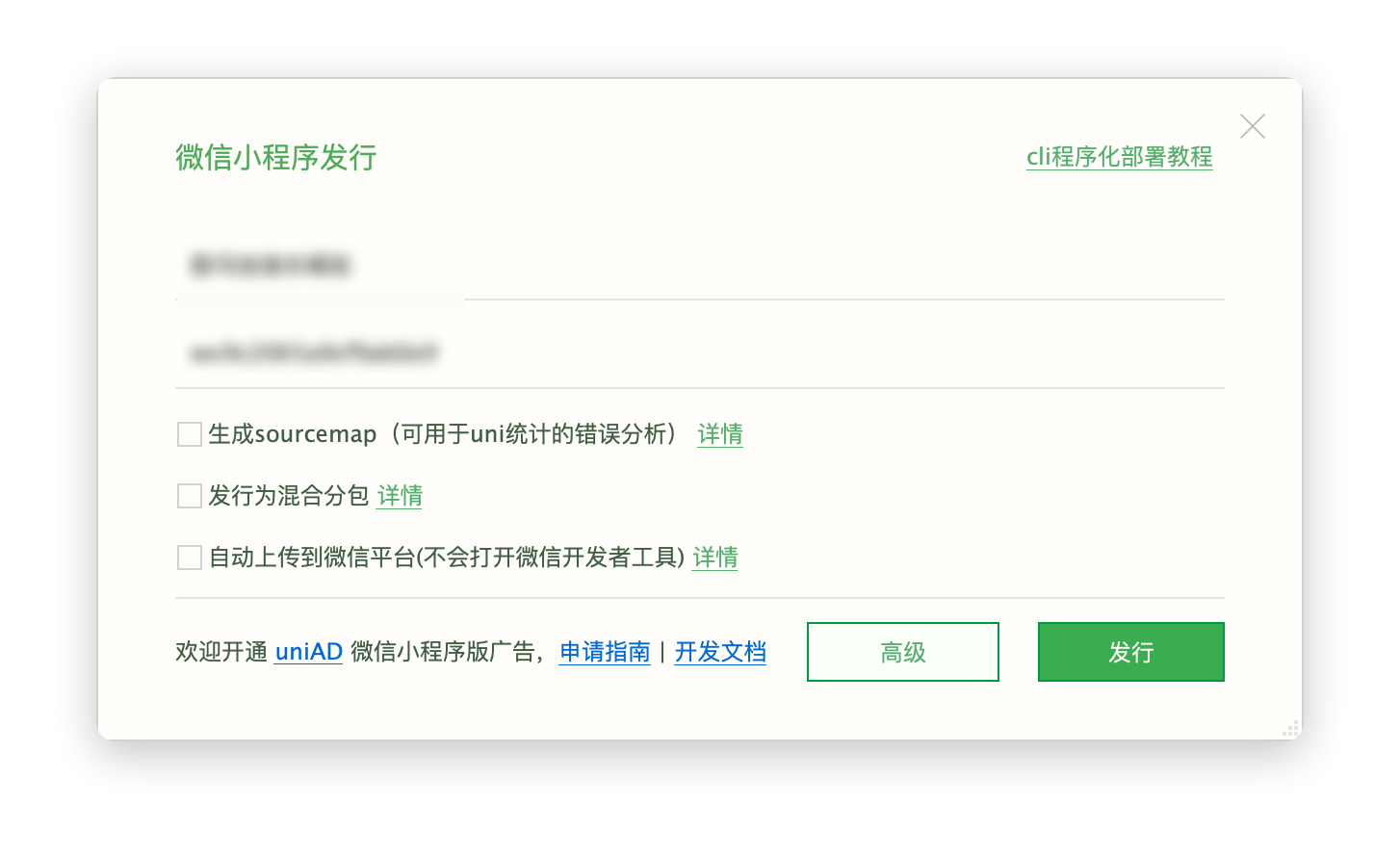 成功变成appid和之前的版本一样,因为我要一套程序打包发行不同的微信小程序