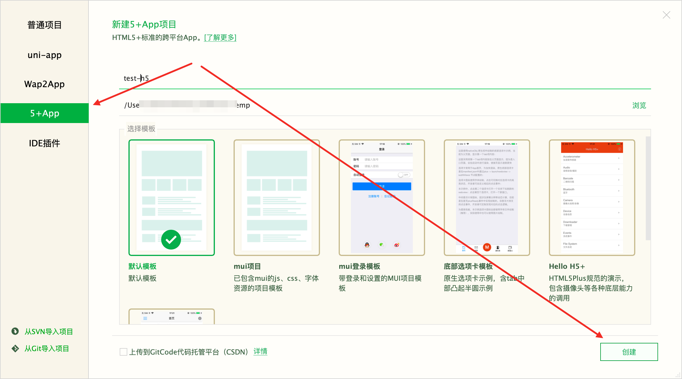 这种vue的H5打包成app的uniapp 5+app模板在创建项目的时候怎么找不到呢?在那里哇?