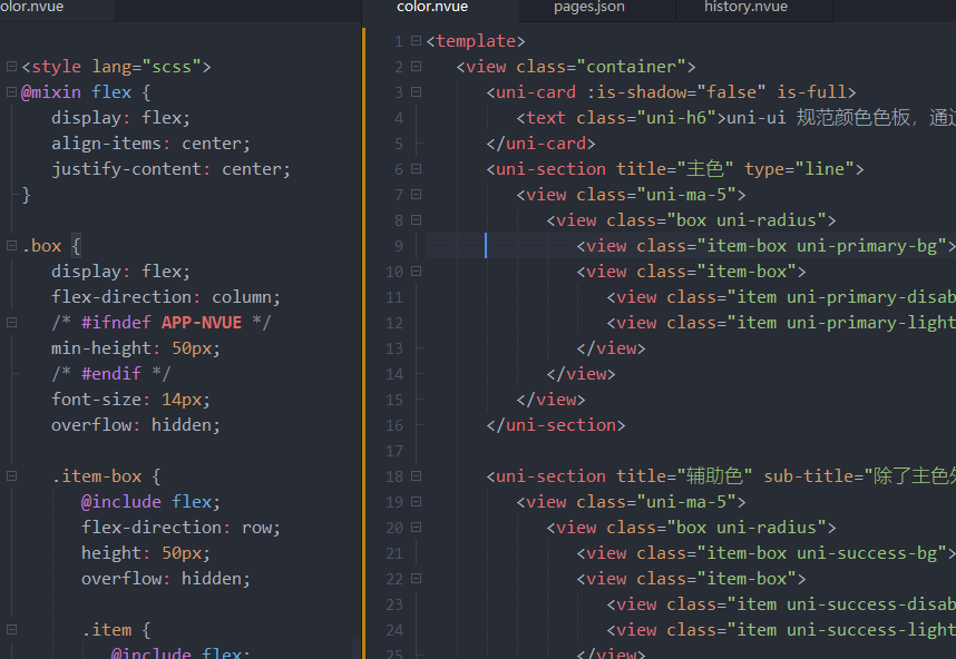 nvue页面什么时候开始支持scss了呢?之前好像在官网哪里看到不支持scss,less,然后今天无意在uniapp-hello项目中的color.nvue这个页面中看到有scss的写法,关键是这个页面也很隐蔽.....然后网上搜索到的也通通都是说nvue不支持scss