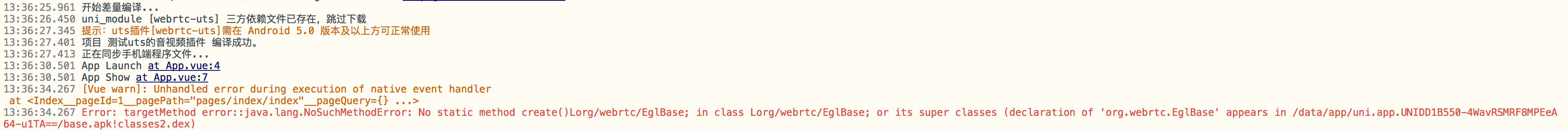 我这边开发webrtc插件,打自定义基座后可以运行,代码如下