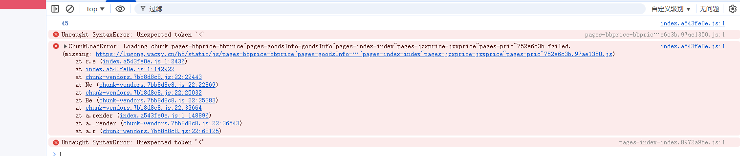 pages-bbprice-bbpric…e6c3b.97ae1350.js:1 Uncaught SyntaxError: Unexpected token '<'