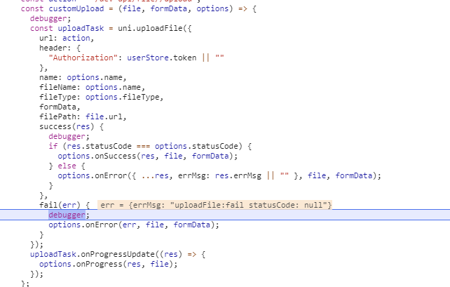 上传图片 手机端选择任意图片后 直接进入fail回调(并没有发送请求到服务器),报错内容是uploadFile:fail statusCode: null