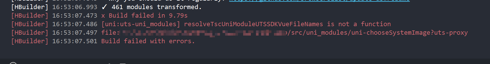 使用 npx @dcloudio/uvm@latest 指令升级之后,到Hbuilder X 打包出现如下错误。